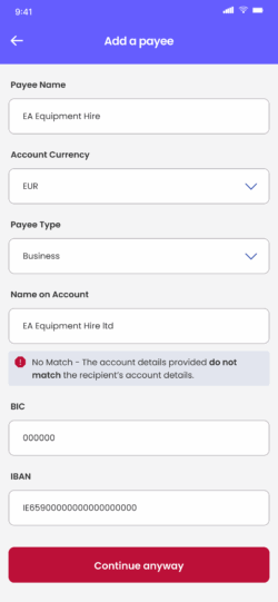 - No match, the name is wrong: If the name doesn’t match, you’ll be advised to contact the person or organisation you’re trying to pay.